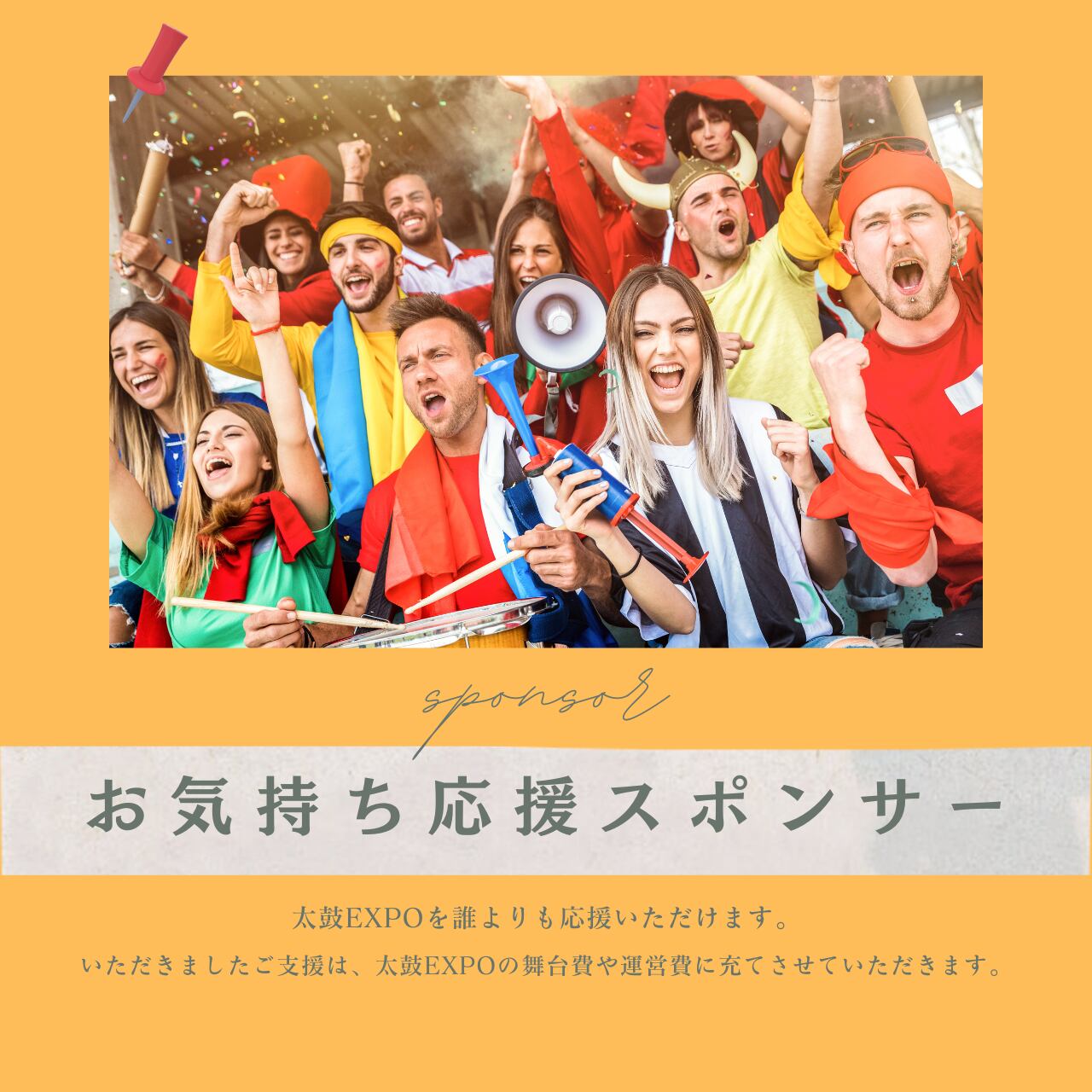 いただきましたご支援は、太鼓EXPOの舞台費や運営費に充てさせていただきます。
